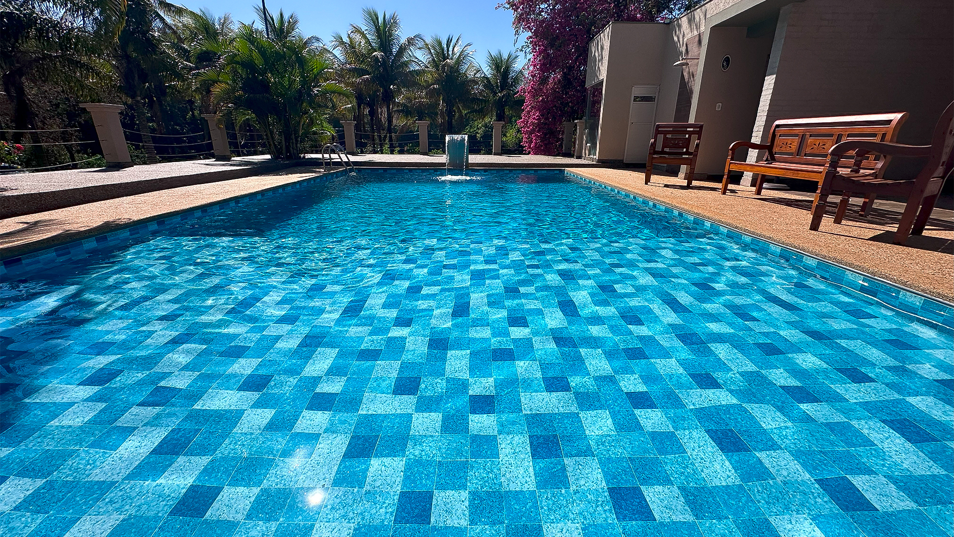 Em piscinas retas e em esquadro, prefira estampas maiores para melhor acabamento.