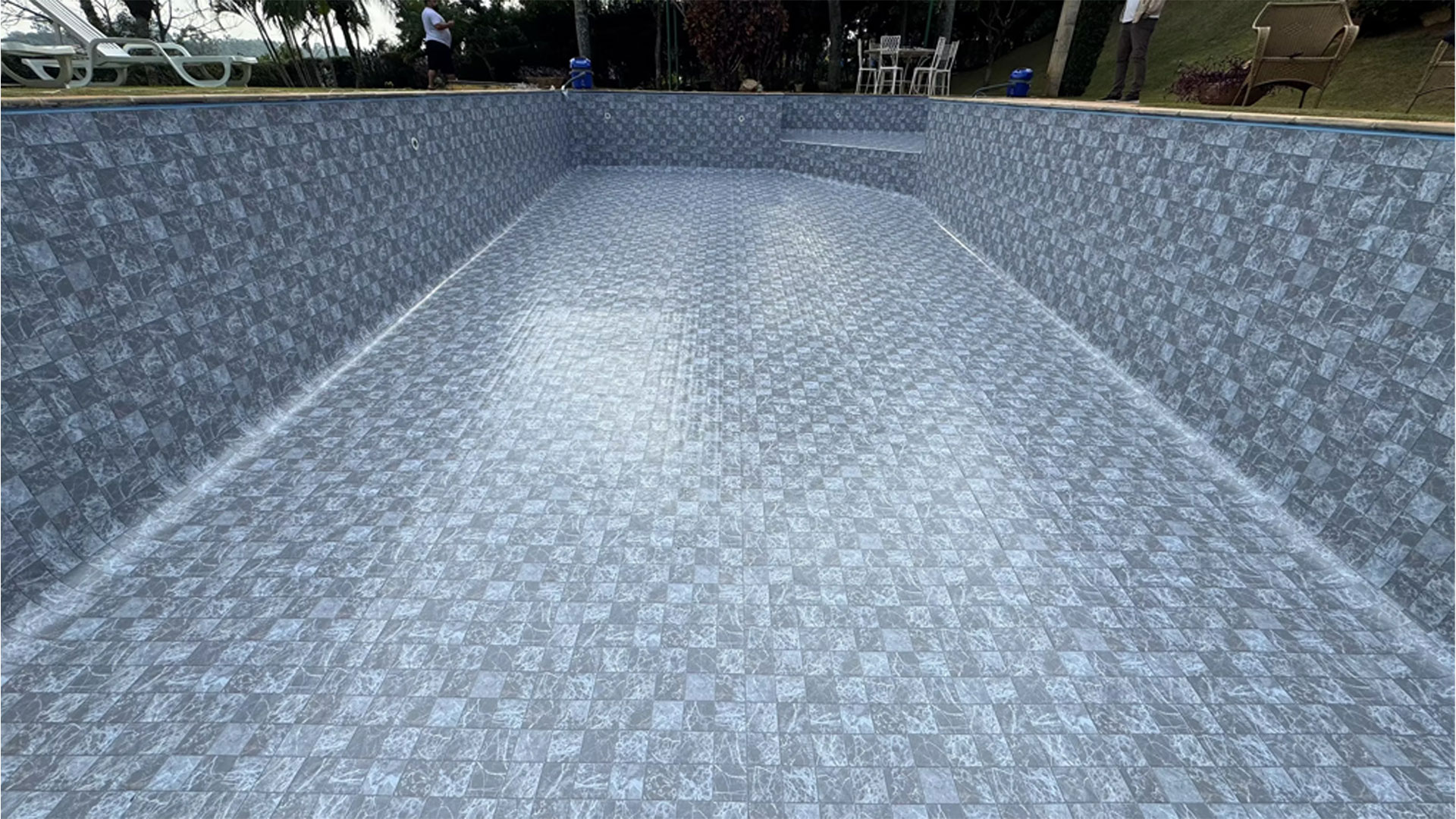 Em piscinas retas e em esquadro, prefira estampas maiores para melhor acabamento.